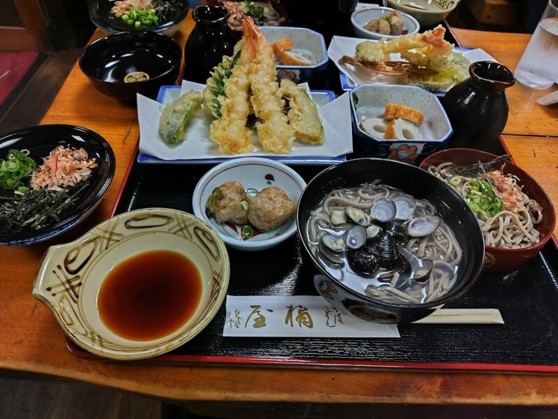 しじみそば、割子そば、あご野焼き、天ぷらまでついていて、まるで小さな会席料理のようです。
