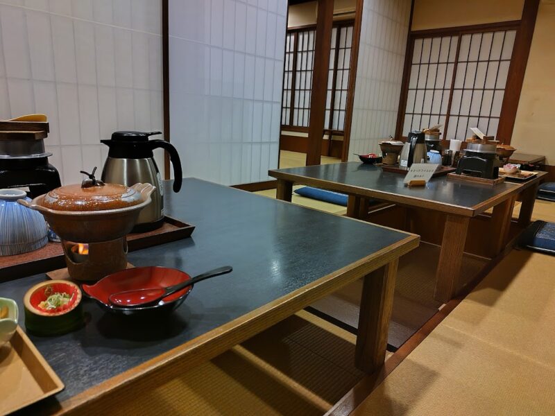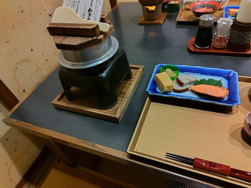 朝食では仁多米が釜炊きで提供され、湯気とともに一日のエネルギーをもらえるようでした。